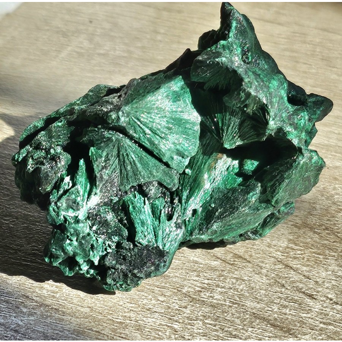 Vlastnosti: Malachit pôsobí upokojujúcim spôsobom, regeneračne a harmonicky, k načerpaniu novej sily, má regeneračné a hojivé schopnosti, podporuje imunitný systém, odstraňuje bolesti kĺbov a chrbtice a takisto škodlivé látky a energie, ktoré spôsobujú choroby. Preto ho môžete prikladať na všetky bolestivé a choré miesta na tele.