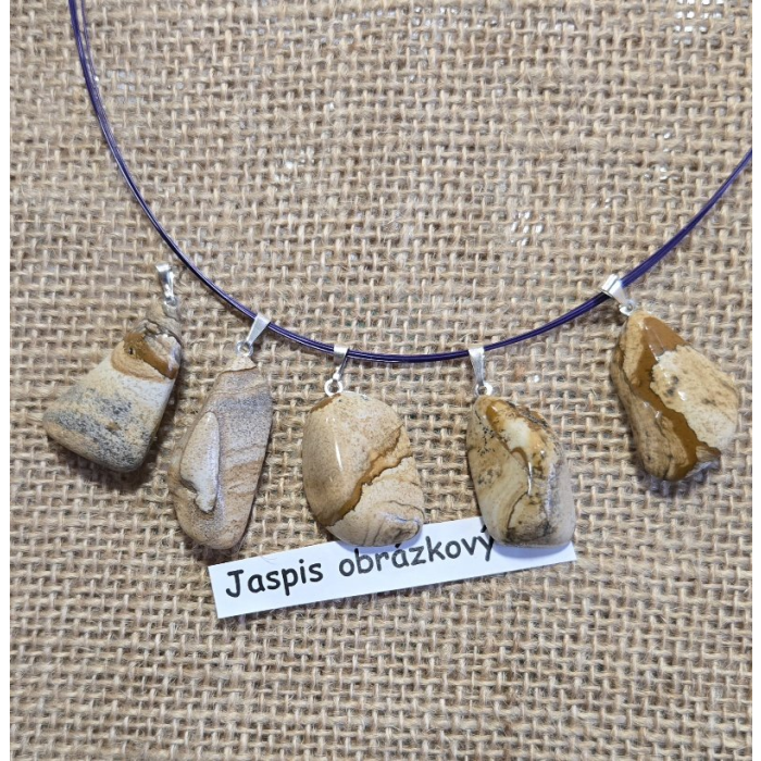 Prívesok z pravého polodrahokamu Jaspis obrázkový. Dĺžka cca 2,2 - 2,4 cm. Úchyt je bežná bižutéria-tombak. Vyberieme Vám ten najkrajší z ponuky. Cena je za 1 ks. Posielame so šnúrkou. Jaspis obrázkový detoxikuje, dodáva vytrvalosť, trpezlivosť, odhodlanosť, pomôže premeniť ideály na skutočnosť. Pomáha riešiť konfliktné situácie.
